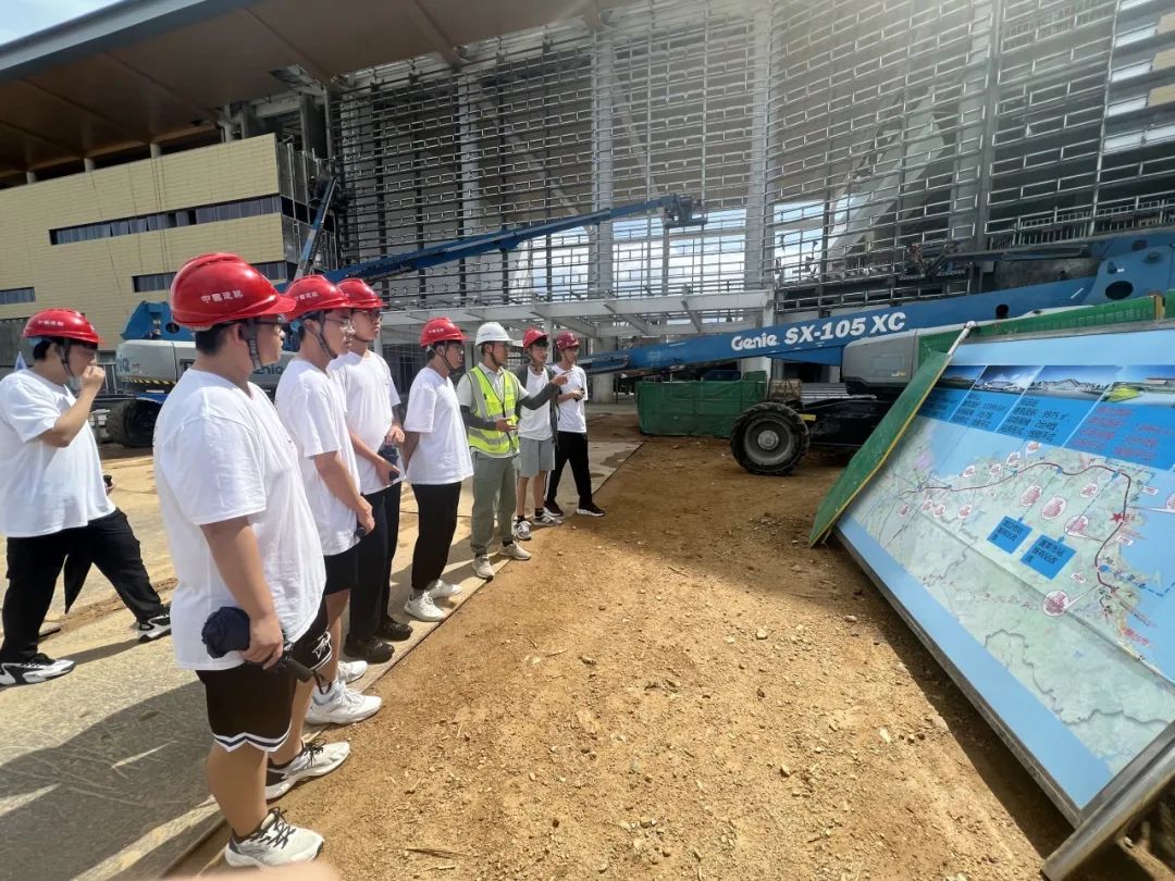 第三站,实践队员来到东方海上“丝绸之路”的首航地——烟台,对烟台港西港区、山东原油管道运输网络、潍烟高铁工程开展调研学习。技术人员通过模拟沙盘的方式生动呈现西港区原油储运管道系统,使实践队员们更清晰的认知西港区原油运输的基本线路,深刻体会烟台港在国家“一带一路”建设过程中发挥的重要作用。在烟台港的“最强大脑”——生产调度中心,实践队员深刻感悟到烟台港西港区的管道运输系统高度智能化、数字化的特性,以及中国绿色港口建设的全新智慧。而路上最便捷的交通工具——高铁,在烟台的发展规划中也起到重要的作用,在中建八局工程人员带领下,实地参观高铁建设施工现场,学习如何将课本理论应用在实践当中。从轨道交通为突破,带动区域协调发展,打造半岛1小时、省内2小时、首都4小时的高质量交通圈,真正发挥现代化综合交通的带动作用。