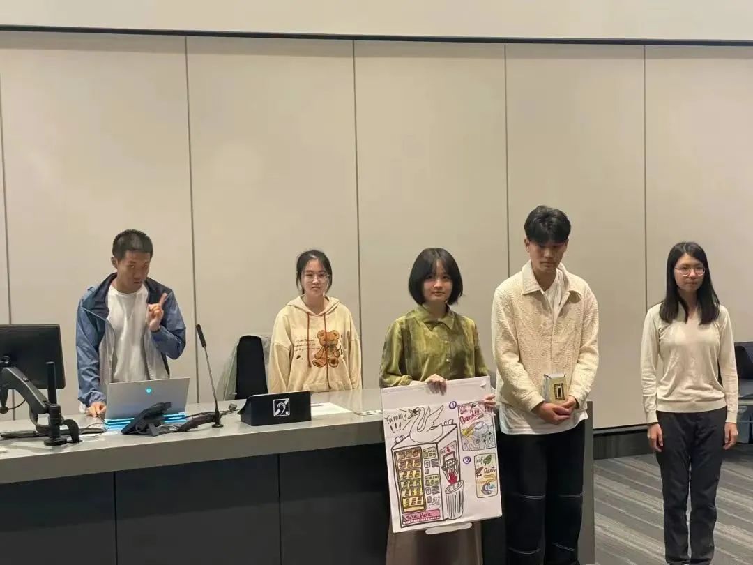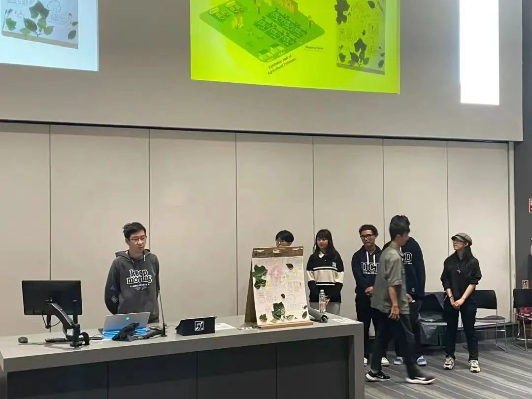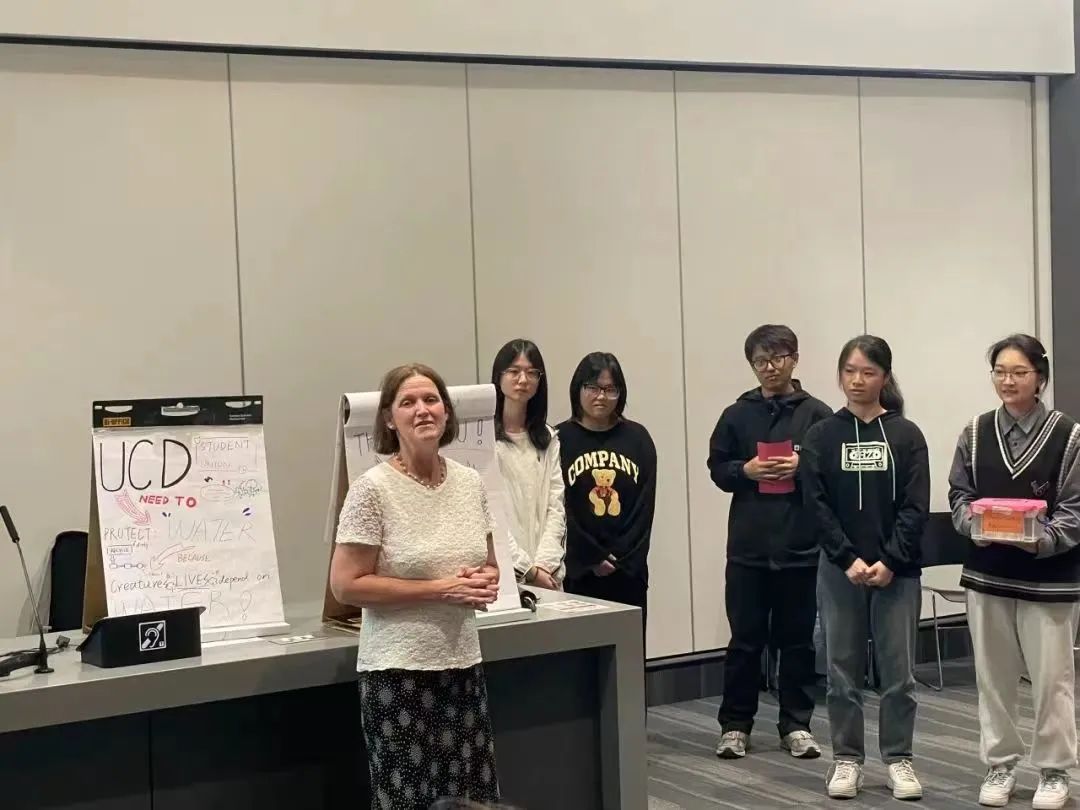 在经过两周的创新课程学习后,同学们随机分组,进行了 “How can Plants/Creature Biodiversity be Protected, Restored or Regenerated in UCD?”三项结课议题的研究展示。三个课题的指导老师和同学们一起评估大家的创新展示,并分别选出2个最优秀团队前往报告厅进行展示。营员们团队协作,集思广益,采取了话剧演绎、视频拍摄、模型制作等多种形式展示了对于保护UCD校园内的生物多样性的新想法。