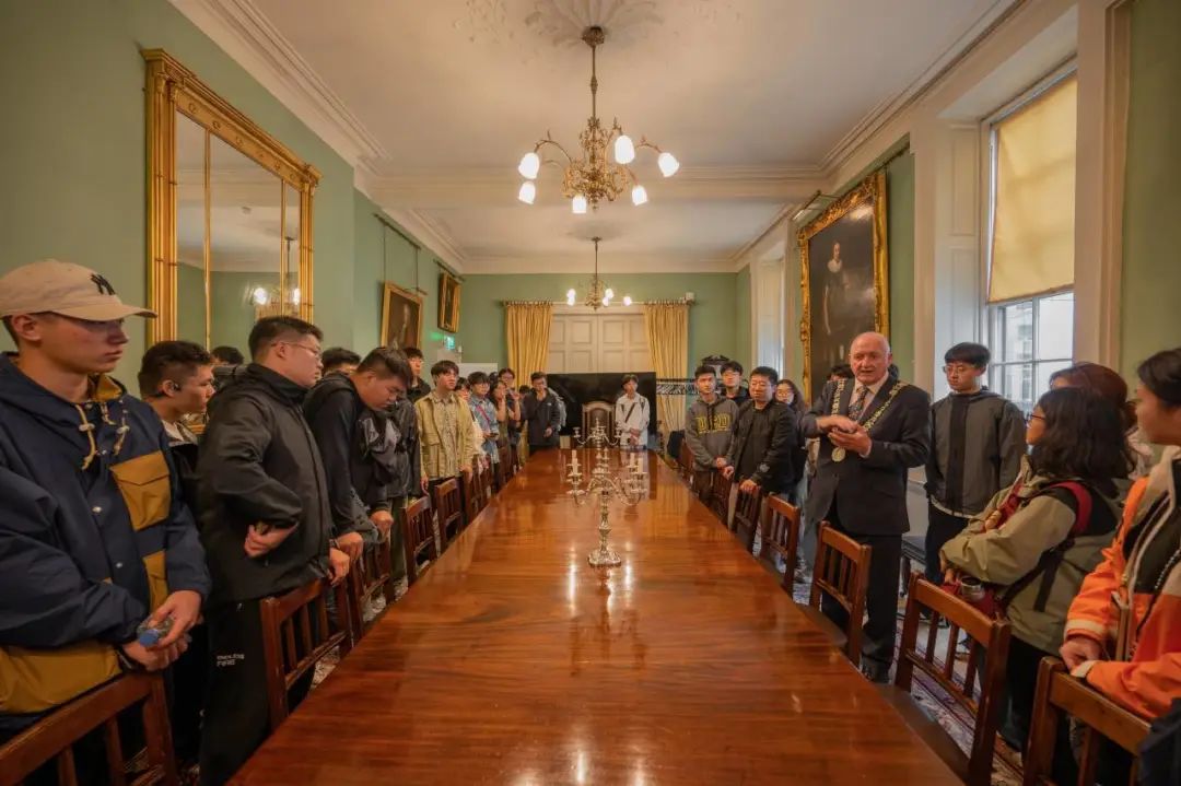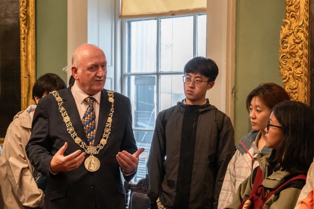 Simon、Hugo带队再次前往市中心,与前都柏林市长见面。市长管家热情接待同学们,并引导大家与市长合影留念,市长也耐心地为同学们讲解市长府邸,讲述了历任市长的经历,并表达了愿与中国加大往来力度、互帮互助、携手同行的美好期望。