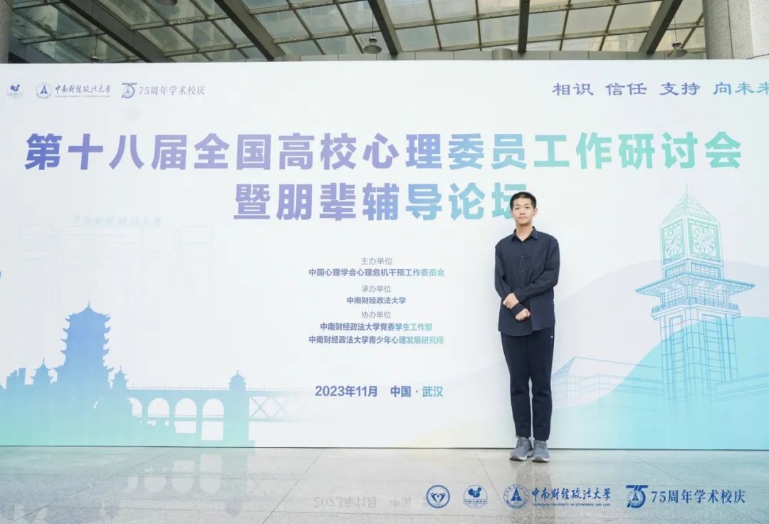 在大会上进行发言,分享了朋辈心理委员的工作经验。在学院彩虹心理协会任职期间,他倡导多形式、多主题的心理健康活动,注重活动的实效性与创新性,提出个体与集体协同发展、心理健康与五育并举相结合等工作思路,不断推进91视频
