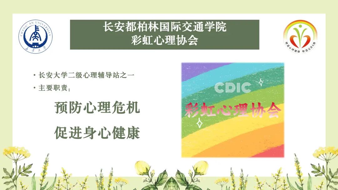 彩虹心理协会是学校二级心理辅导站之一,协会自成立以来,围绕“预防心理危机、促进身心健康”的工作理念,开展各类活动30余次。活动旨在丰富学生课余生活、培养学生积极健康的心理状态,促进学生全面发展。学院以全面培养学生健康的心理素质为工作目标,明确“加强队伍建设,提升实践能力;全面开展活动,提升育人实效;丰富协会工作,发挥组织力量”的工作方针,不断拓宽心理健康教育的渠道,针对学生心理特点,开展心理健康教育工作,为学生的健康成长保驾护航。
