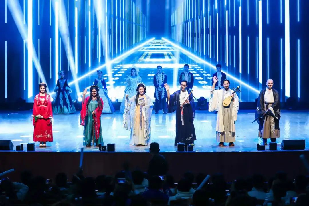 《East West》中外双方师生身着优雅的汉服和古典西式服装,伴着优美的旋律缓缓走来,展现了美美与共的文化交融。