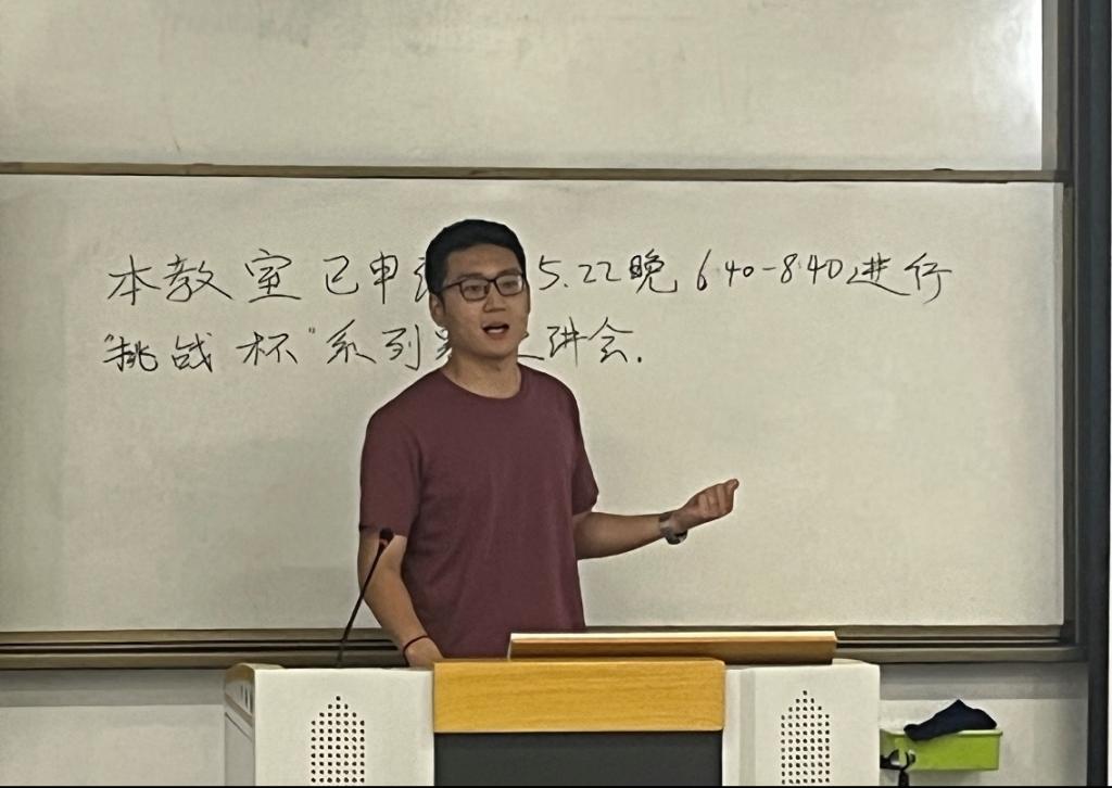 曹胡杨为同学们结合学院情况讲解了创新创业及学科竞赛赛事框架、论文类别和级别、专利和成果应用证明等内容,并强调了“挑战杯”系列赛事的赛事级别、范围和重要性。他表示,参加竞赛需要关注项目本身,要持续做好项目推进和研发,最终转化成论文、专利和竞赛获奖等成果,希望同学们能理清竞赛思路,抓住参赛机会,做好参赛准备,打磨参赛作品,最终有所收获。