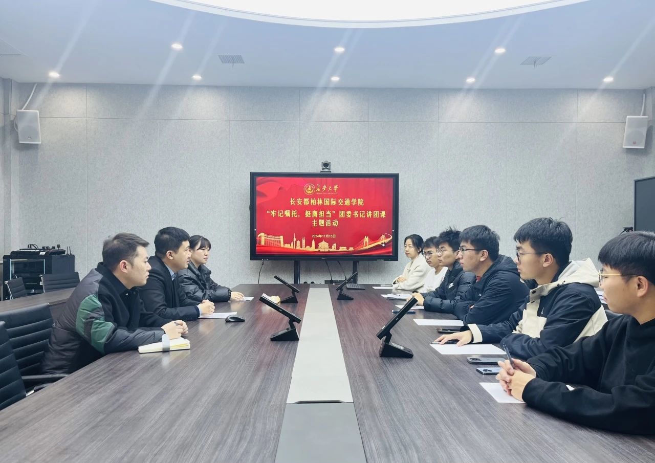 团委于2024年11月15日上午在鸿远教学楼四层会议室召开“牢记嘱托,挺膺担当”团委书记讲团课主题活动。学院团委书记郝裕、团委副书记梁晶栋及部分院级组织学生干部参加此次团课活动。