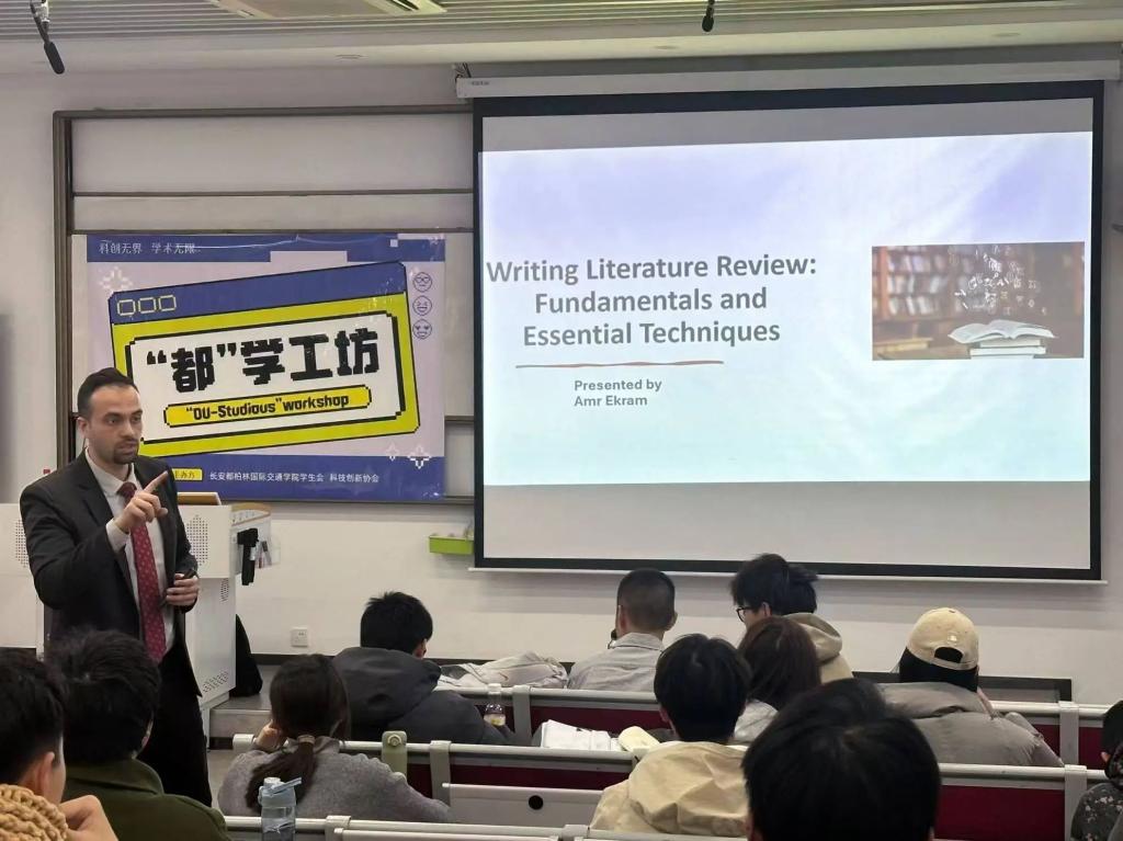 学生会携手院科技创新协会于12月5日晚19:00,在WH1407教室联合举办“都”学工坊系列活动第二期。本期活动主题为“Writing Literature Review: Fundamentals and Essential Techniques”,我校博士Amr Ekram受邀担任讲师,为同学们讲述如何撰写高质量的英文文献综述。院团委书记郝裕,辅导员庞媛出席本次活动,来自91视频