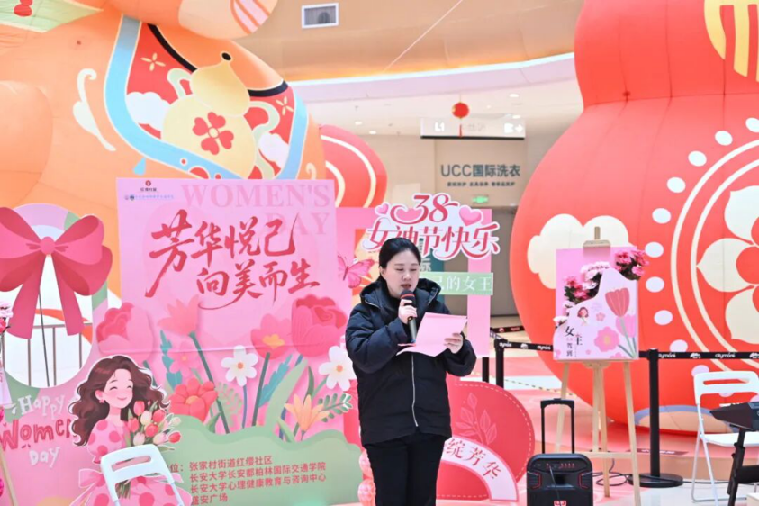 心理健康教育与咨询中心、张家村街道红缨社区、碑林区法院等单位,在盛安广场共同举办“芳华悦己・向美而生” 妇女节主题活动。这场集趣味、创意与赋能于一体的特别活动,吸引了近百名社区居民热情参与。