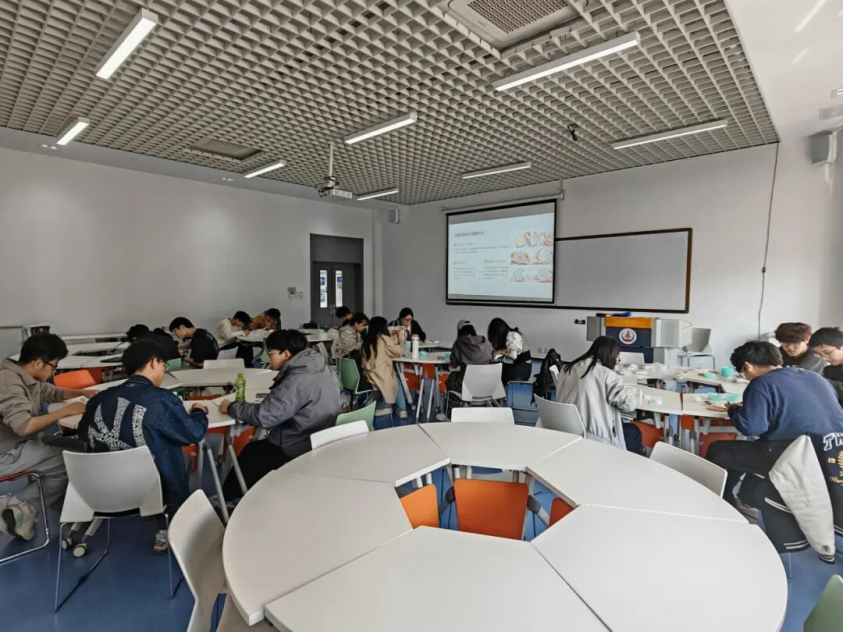 同学们在制作过程中相互帮助、交流想法、分享灵感,现场气氛轻松愉快、温馨热烈。大家在专注创作中暂时放下学业压力,在互动合作中拉近彼此距离,在审美体验中感受生活温度。活动尾声,现场还设置了作品展示、交流分享和花絮拍摄环节,进一步增强了参与感和仪式感,实现了全员互动、全程投入。