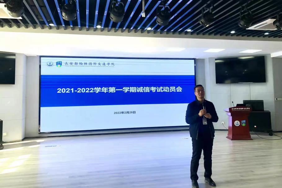 于2022年2月28日召开了诚信考试动员会,这是继2021年12月1日与2日之后的第三次诚信考试动员会。学院院长汪海年,副书记姚以亮、副院长柏强、教学教务部主任贾婕妤、学生事务部主任孙士强、学院各年级辅导员及学院全体学生参加了诚信考试动员会。