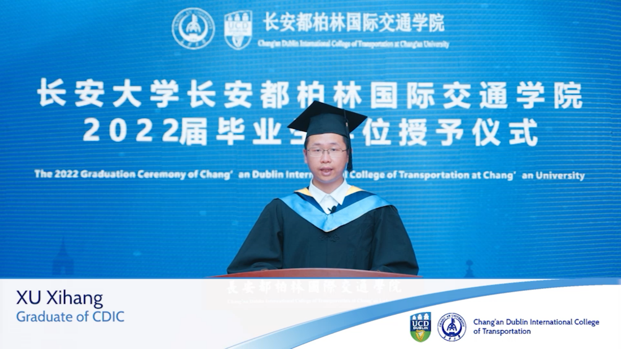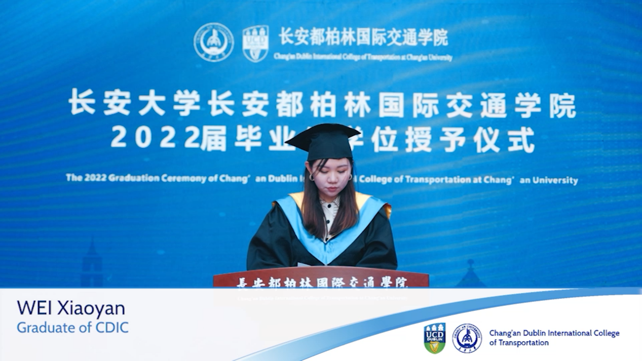 三名道路桥梁与渡河工程专业的优秀毕业生代表魏笑嫣、徐熙杭、赵宇洋分别在典礼中发言。他们表达了对父母、学院、老师及同学们的诚挚感谢,并表示,中外合作办学模式为他们的大学生活带来了丰富多彩的别样体验。尽管在大学生活中,每个人都曾遇到困境与挫折,但勇敢战胜逆境的经历,令他们变得更加坚强自信。他们相信,在未来的道路上一定可以继续踏实耕耘,在担当中历练,在尽责中成长,用奋斗的青春去迎接新领域、新业态、新事物,用实际行动攀登人生的每一个高峰。