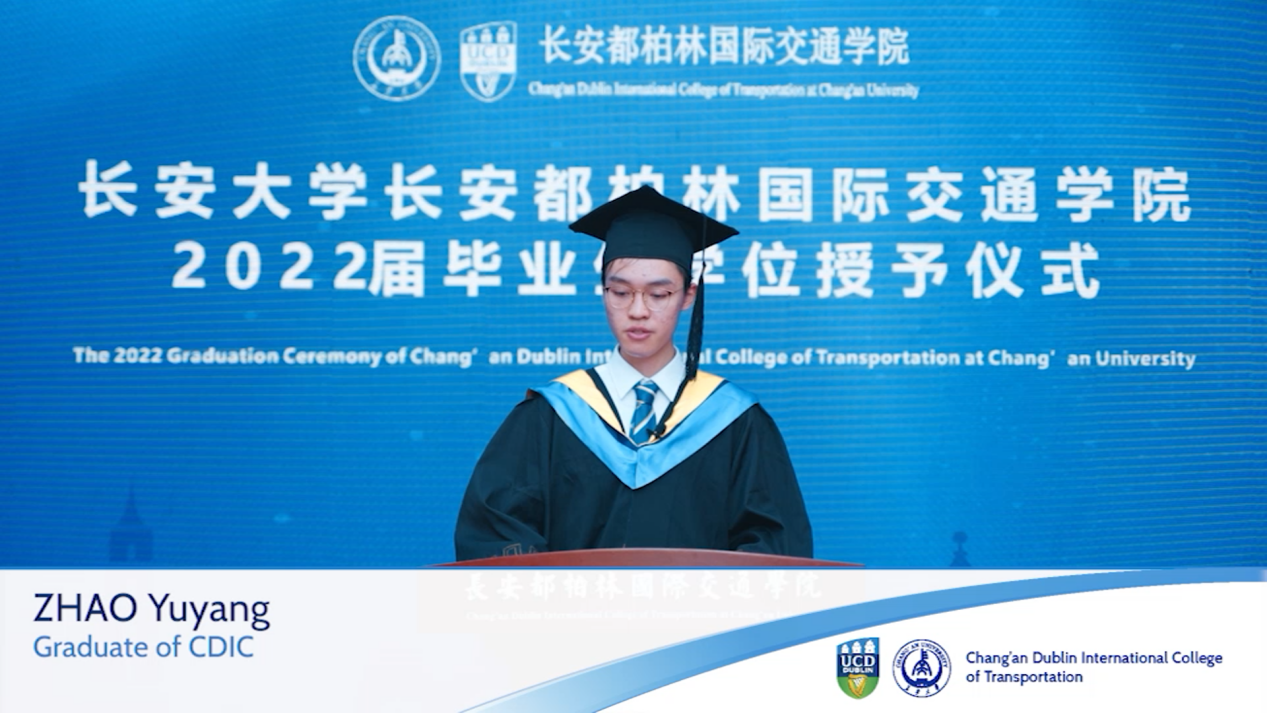 定能培养出更多具有国际化能力的创新型人才。 2022届的许多毕业生已经选择进入都柏林大学或其他世界一流大学深造,其中包括众多QS世界排名前100名的世界名校。他相信在未来,两校创造的国际化教育教学平台能塑造培养出更多优秀、努力的创新型人才。最后,他衷心祝愿全体毕业生们能在未来道路上继续大放异彩。