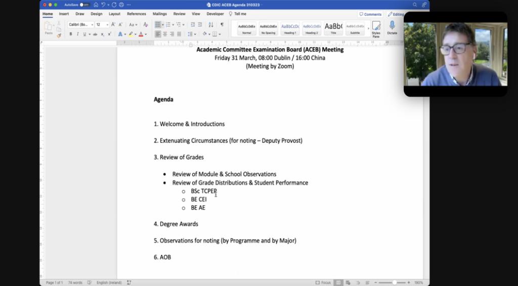首先,Paul Fanning对各位委员的参会表示感谢。他指出,2022年秋季学期期末考试受西安突发疫情影响,考试周期延长,但学生及中外双方任课教师面对挑战,积极克服困难,圆满完成了教学任务。并表示,本学期恢复常态化线下教学,都柏林教师陆续抵达91视频