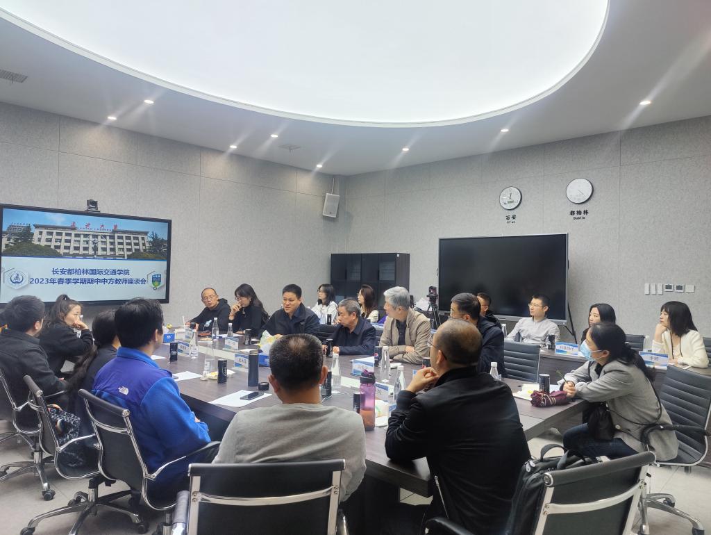 召开2022-2023学年春季学期中外合作办学期中教师座谈会。学院副院长柏强、三位院聘督导及学院各年级课程负责人共31人参加本次会议。会议由副院长柏强主持。