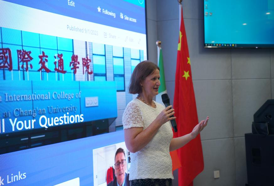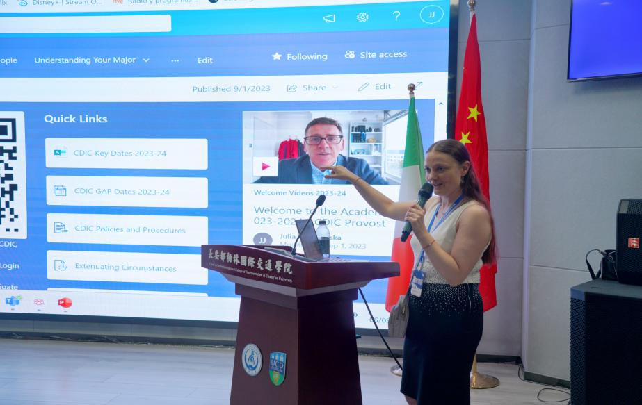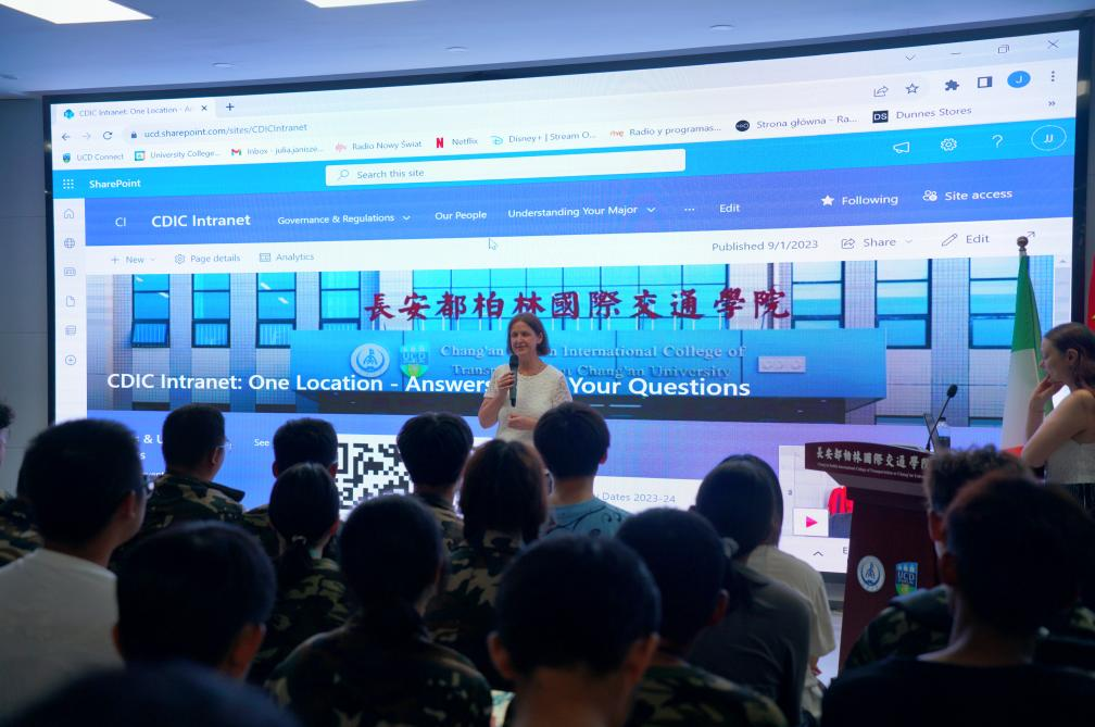 在渭水校区鸿远教学楼四楼报告厅举办了中外合作办学都柏林大学新生学籍注册说明会。学院副教务长Catherine MacKenzie和项目负责人Julia Janiszewska共同为2023级新生介绍了学院以及都柏林大学的相关情况、都柏林大学学籍注册流程及都柏林大学线上系统使用方法。