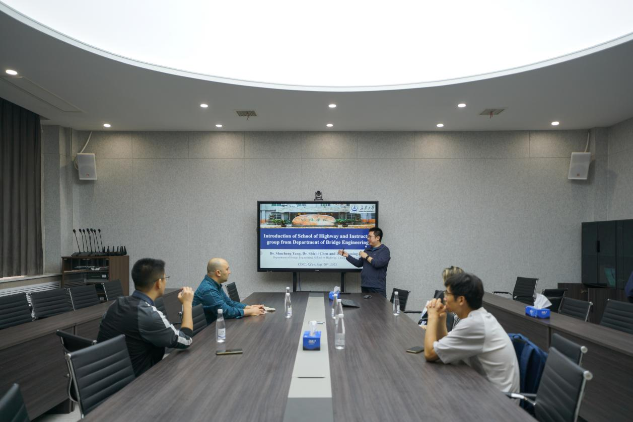 郝键铭为外方教师详细介绍了风洞实验室的结构形式、现有设备、未来规划以及所参与的重大工程项目,讲述了现有条件可支持的科学研究方向和类型。