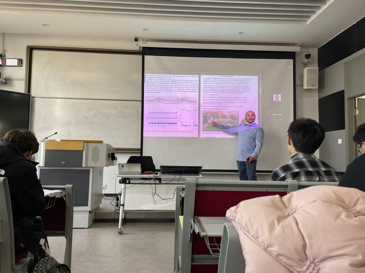 2023年12月1日上午,在学校风洞实验室的大力支持下,学院Bridge Engineering课程在北校区汽车试验场人行天桥开展2023-2024学年秋季学期2020级道路桥梁与渡河工程专业“Bridge Visit”活动。本次活动由都柏林大学主讲教师Ekin Ozer教授组织,学校公路学院桥梁系陈适之老师、郝键铭老师全程参与并协助对学生进行指导。