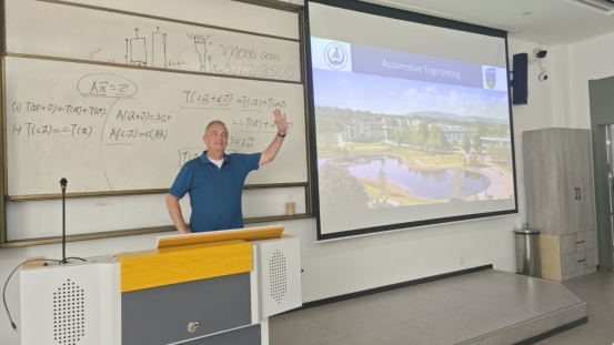 William向大二学生简要介绍了车辆工程的设计原理和应用技巧,鼓励学生积极参与科研项目和各类竞赛,并在课堂学习中深化对专业知识的理解。他鼓励学院学生将海外深造列入未来发展计划,提前准备申请材料,努力丰富自己的课外实践经验和科创竞赛经验,以提升个人综合竞争力。