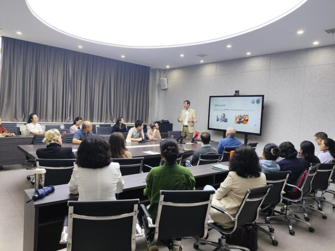 2025年9月17日中午,学院于鸿远四楼会议室召开新学期中外英语教师座谈会。都柏林大学英语课程督导Stephen Kelly博士,学院副院长李程及全体中外英语教师参加会议。