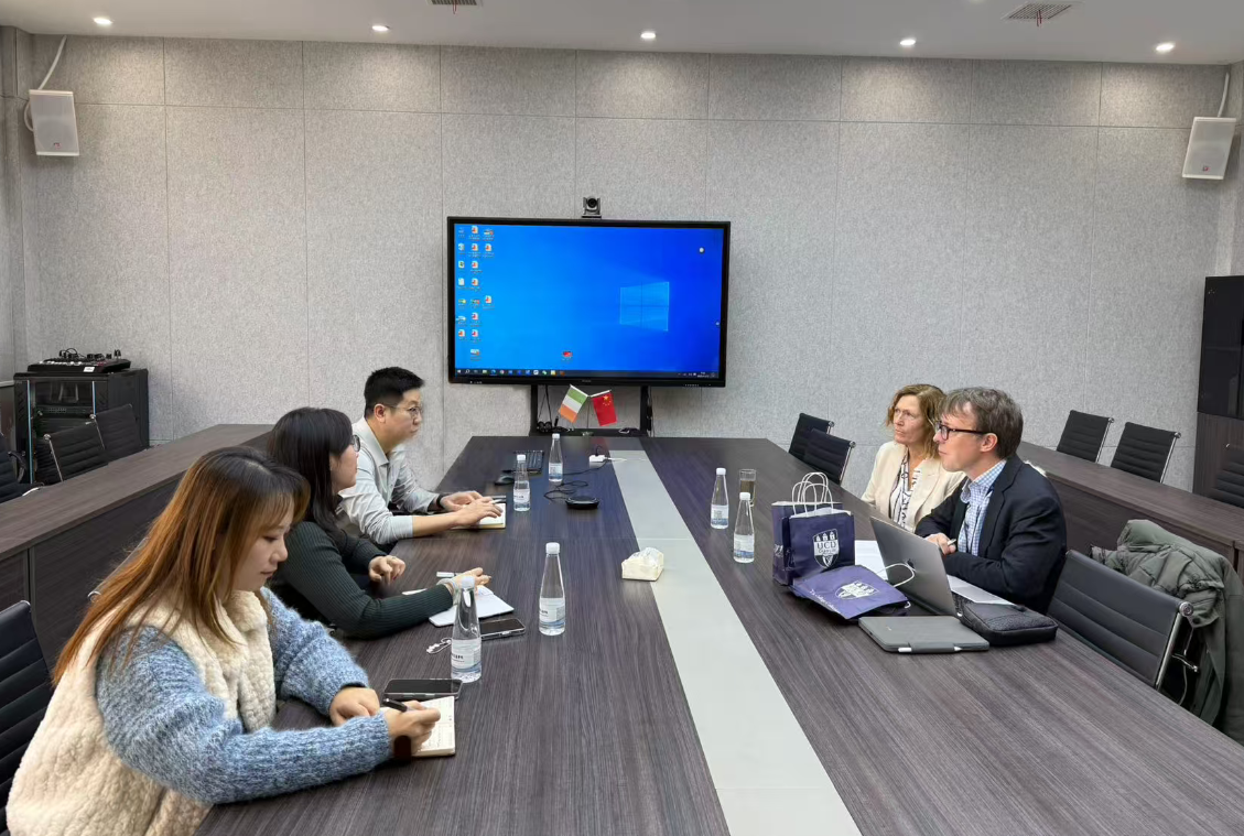 2025年11月17日上午,学院开展英语教学专项研讨会。都柏林大学语言中心主任Anna Nunan,英语教学督导Alex Runchman,副院长李程,教学教务部相关人员参加会议。