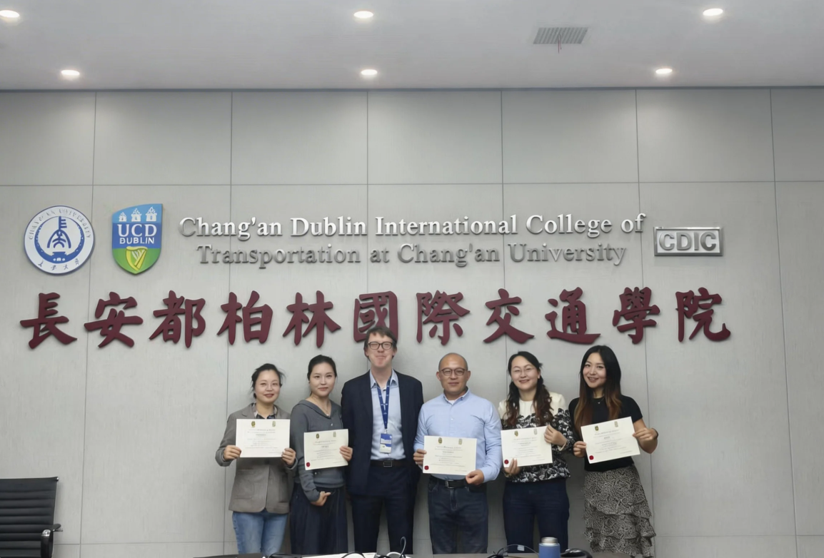 Alex Runchman为9位赴都柏林大学完成海外进修的教师颁发国际英语教师资格证书(TESOL)。证书的授予不仅是对教师阶段性专业发展成果的充分肯定,也彰显了学院持续推进英语师资队伍国际化建设的显著成效。近年来,学院依托中外合作办学平台,积极选派教师赴境外开展专项研修,不断拓展师资队伍的国际视野与专业深度。截止目前,学院已累计选派17名以上英语教师赴海外研修并取得国际英语教师资格证。